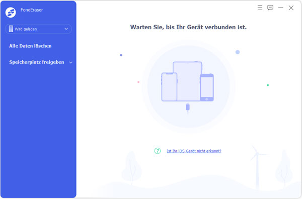Nachdem Sie die Software auf Ihrem Computer installiert haben, starten Sie die Software. Schließen Sie Ihr iPad über ein USB-Kabel an den PC an. Das Programm wird Ihr iPad sofort erkennen.