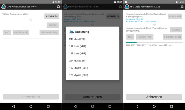 Stellen Sie die Bitrate für die Audiodatei ein. Die Android-App ist auch in der Lage, die originale Audiodatei aus dem Video ohne Konvertierung zu extrahieren.