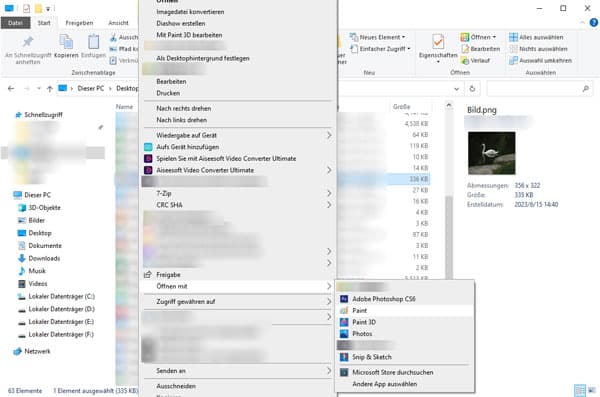 Schritt 1: Öffnen Sie den Speicherordner von dem Bild, das Sie vergrößern möchten. Klicken Sie mit der rechten Maustaste darauf, wählen Sie "Öffnen mit" und wählen Sie "Paint". Das Bild wird in Paint geöffnet.