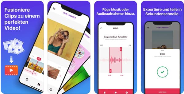 Schritt 1: Laden Sie die App "Video Zusammenführen (Merger)" aus dem App Store herunter und installieren Sie sie auf deinem iPhone.