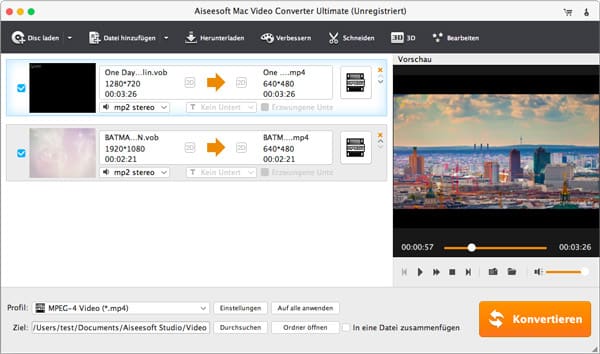 Wie wandelt man VOB in MOV, MPG, WMV, MP4, AVI usw. auf Mac/Windows um